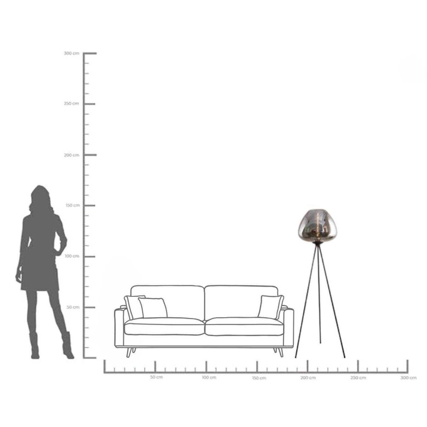 Eleganz trifft auf modernes Design! Diese imposante Stehleuchte vereint einen raffinierten Lampenschirm aus galvanisiertem Glas mit einem dreibeinigen Metallgestell in tiefem Schwarz, veredelt mit einem Hauch von Messing für ein luxuriöses Finish. Als stilvoller Blickfang neben Sofa oder Sessel spendet sie sanftes Licht für eine gemütliche Atmosphäre oder fokussierte Helligkeit zum Lesen. Besonders harmonisch wirkt sie mit dunklen Holzmöbeln, sanften Grautönen und samtigen Textilien für ein edles Wohnambiente. 230 V, 50/60 Hz, Fassung E27, Anzahl Leuchtmittel 1, max. 40 Watt, Leuchtmittel nicht inklusive, Leuchtmittel austauschbar