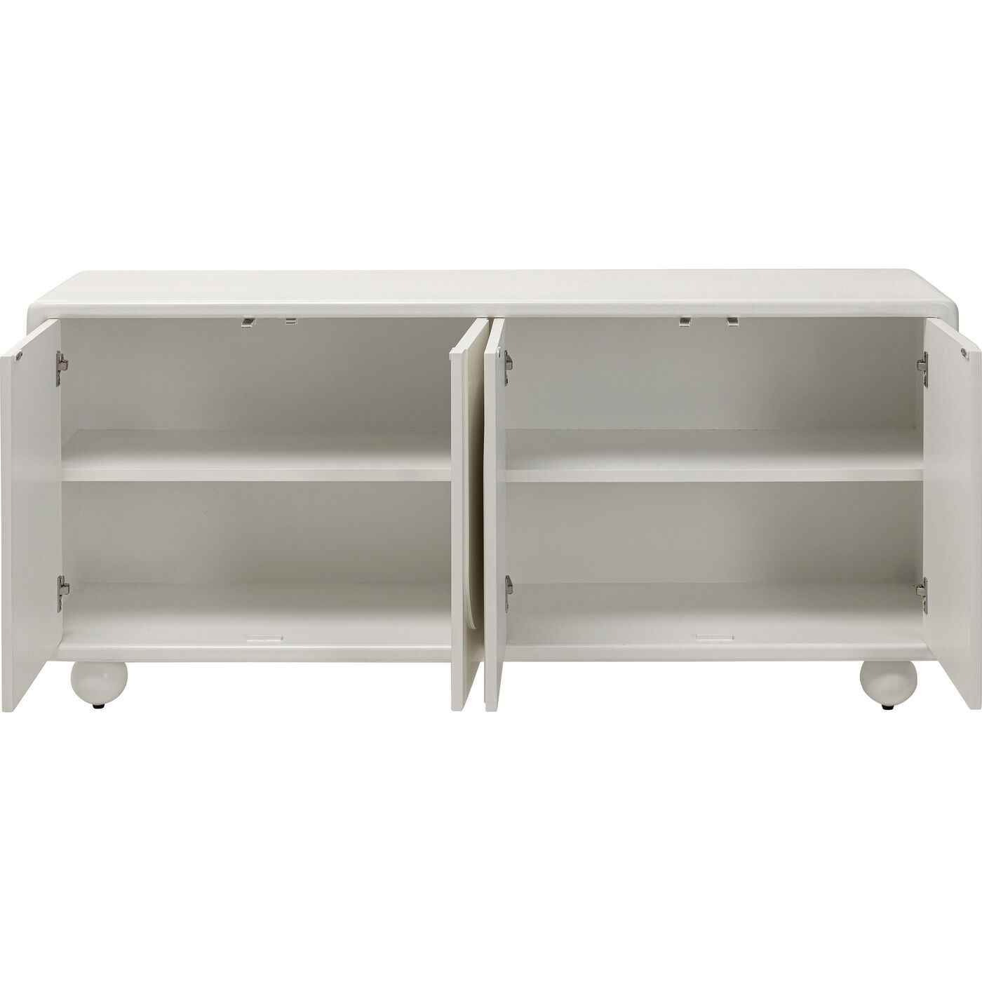 Weiße, klarlinige Möbel bieten zahlreiche Vorteile beim Einrichten. Sie verleihen Räumen eine helle, freundliche Atmosphäre. Optisch verschwinden sie nahezu vor hellen Wänden, was jedem Raum eine Leichtigkeit verleiht.Das Designer-Sideboard von KARE fügt sich dank des harmonischen und klarlinigen Designs nahtlos in alle moderne Einrichtungsstile ein. Mit dem gewitzten Design verleiht es dennoch jedem Wohnzimmer oder Schlafzimmer eine individuelle Note. Durch die klare Linienführung entsteht ein Gefühl von Ordnung und Ruhe. Zudem lassen sich weiße Möbel leicht kombinieren und setzen Dekorationsobjekte wirkungsvoll in Szene. Ihre Schlichtheit ermöglicht eine flexible und anpassbare Raumgestaltung.