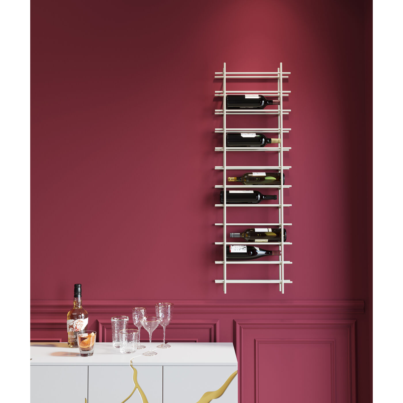 - Dieses stilvolle Weinregal in modernem Greige sorgt für Ordnung und setzt gleichzeitig markante Designakzente