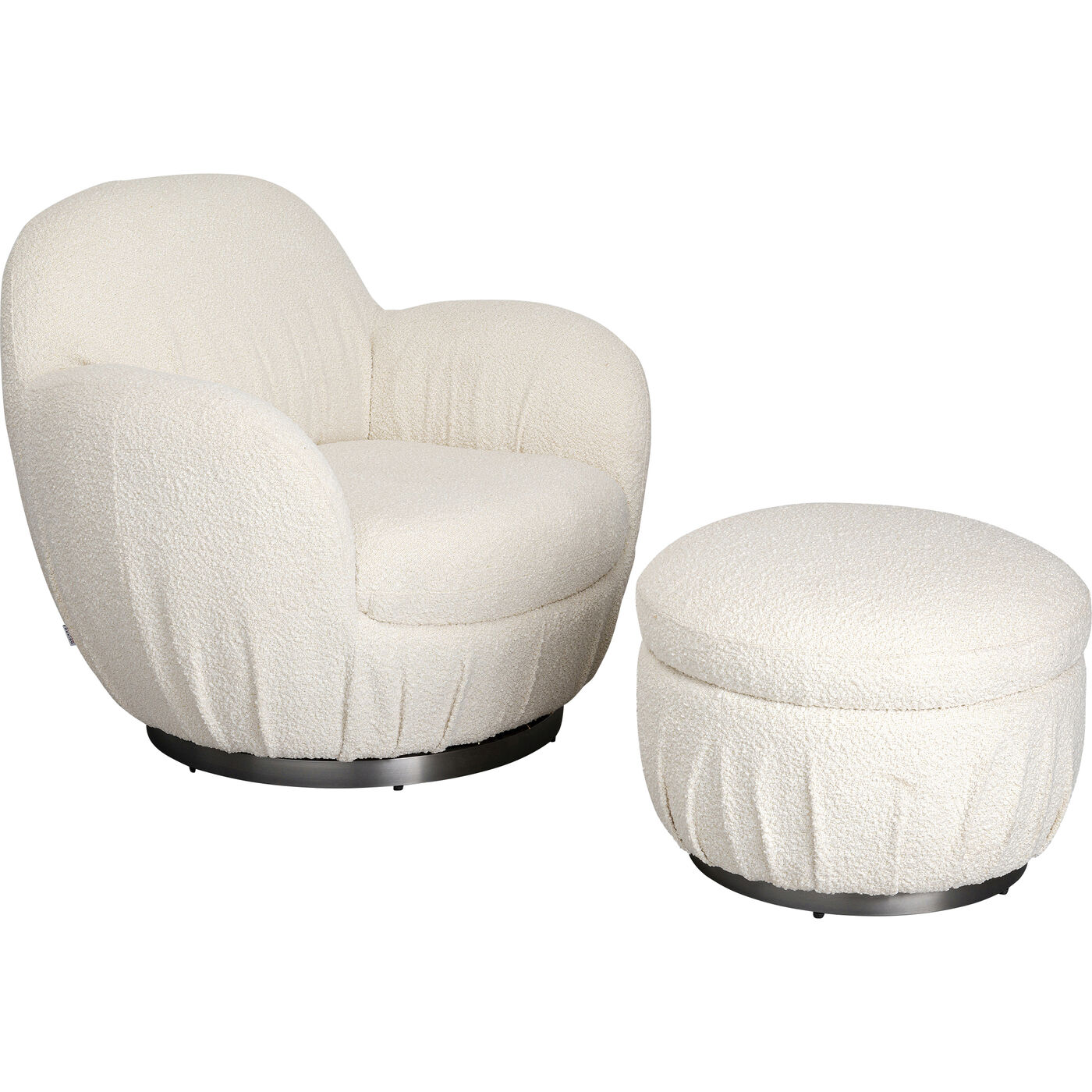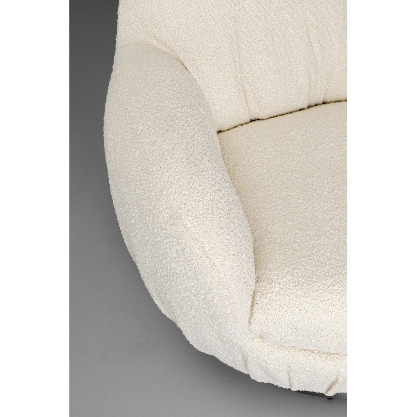 - Creme-weißer Drehsessel mit Bouclé-Bezug, 90 x 88 x 77 Zentimeter (H/B/T)