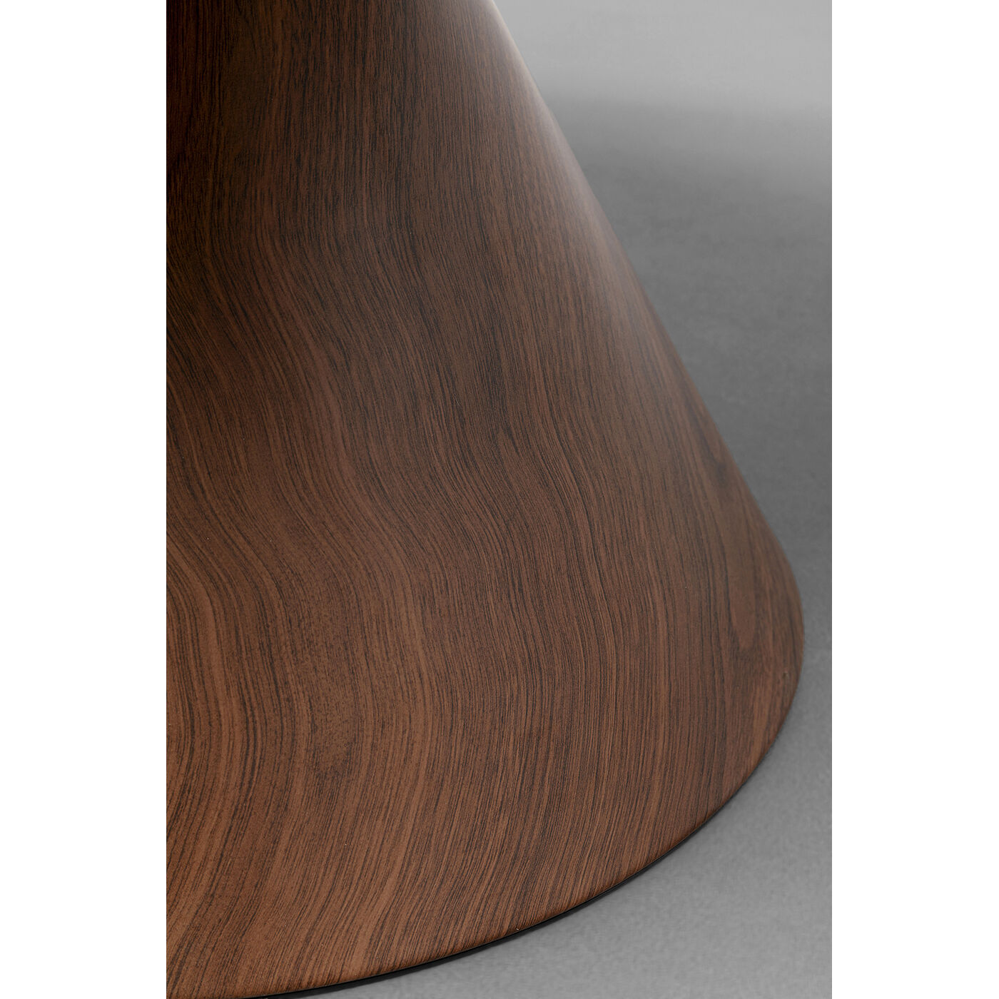 - Der kegelförmige Fuß aus robustem Stahl ist mit braunem Holzdekor geschmückt
