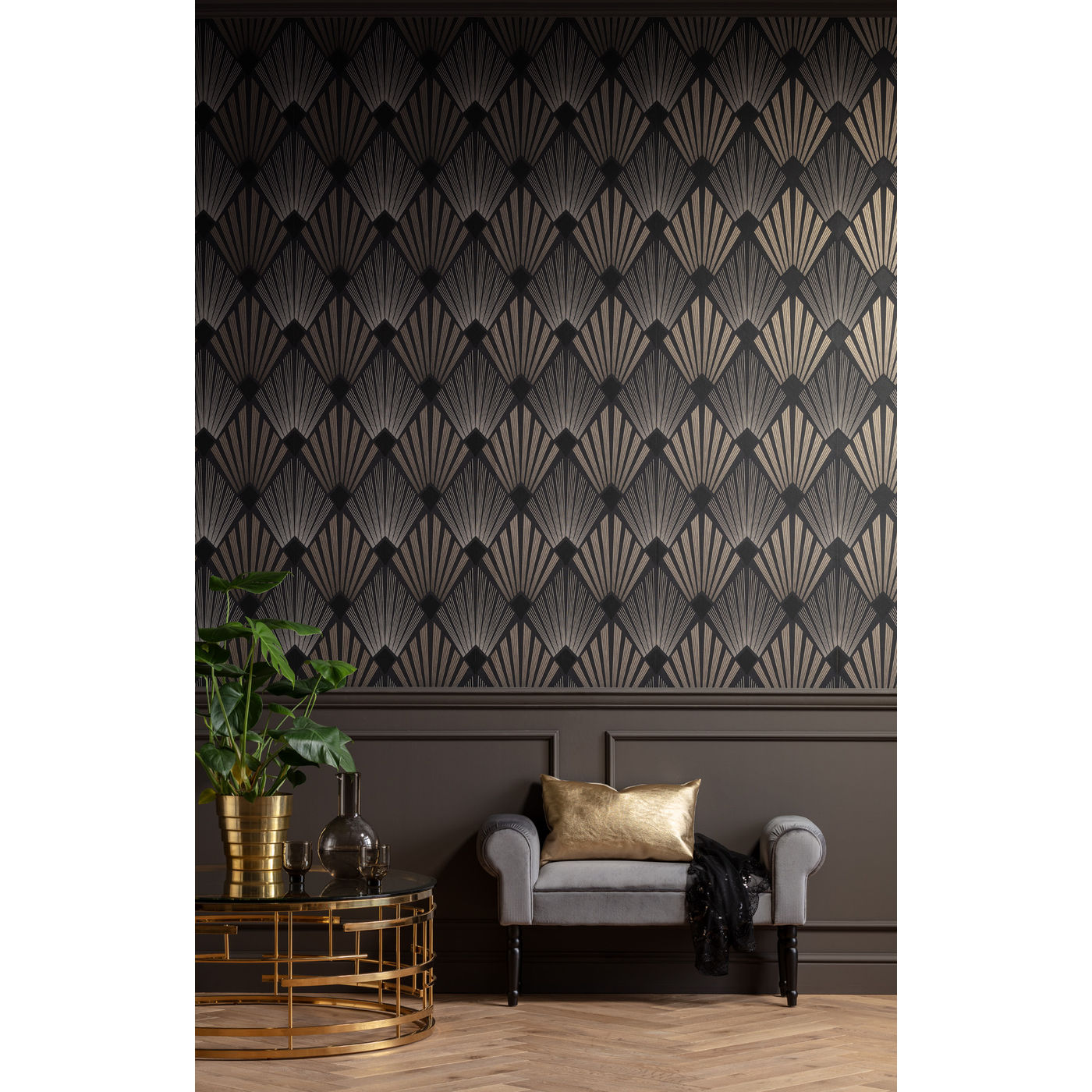 Die runde Schalenform war ein klassisches Design-Merkmal bei Stühlen des Art déco und macht sich bis heute sehr gut. Messingdetails und der schlichte Stahlrahmen verleihen dem Stuhl Eleganz, der Bezug im Leder-Look gibt ihm etwas Exklusives. Kein Wunder, dass dieser Armlehnstuhl sowohl in modernen Räumen als auch in glamourösen Wohnwelten gut aufgehoben ist.110 kg max. Belastbarkeit zerlegt 49 cm SitzhöheGestell: Stahl titanbeschichtet, Bezug: 100 % Textil polyurethanbeschichtet, Polsterung: 24 kg/m³ Polyurethan, Sitzschale: Furnierschichtholz naturbelassen, Lehne: mitteldichte Faserplatte naturbelassen, Fuß/Füße: Stahl pulverbeschichtet, 110 kg max. Belastbarkeit, zerlegt, 49 cm Sitzhöhe